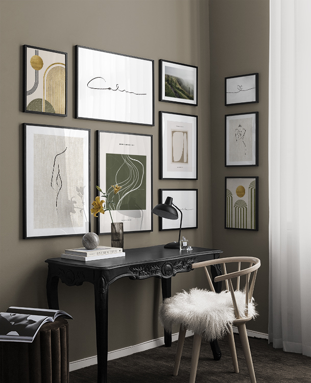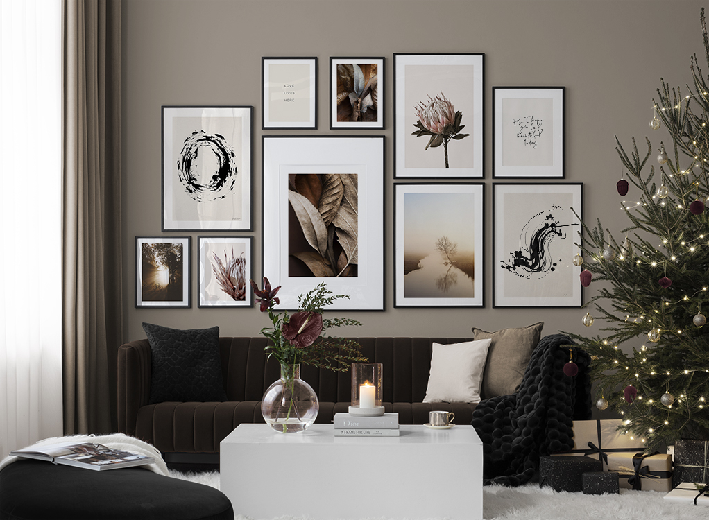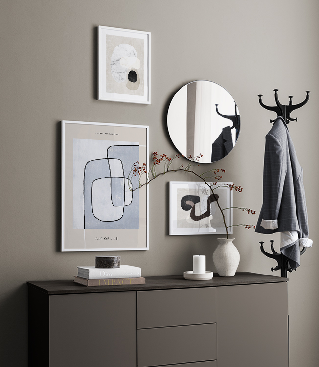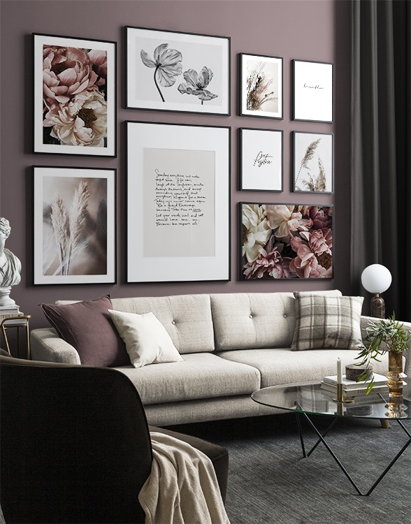 I vores inspirationsdel kan du gå mellem forskellige rum og stilarter for at finde en billedvæg, der passer netop til dig! Find inspirationen til, hvordan du kan kombinere forskellige plakater og skabe en flot billedvæg i dit hjem.