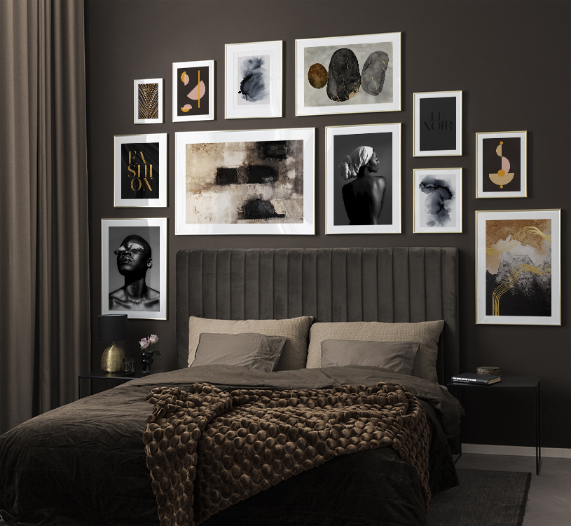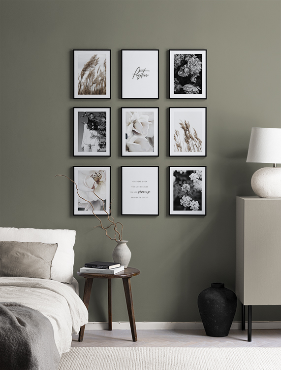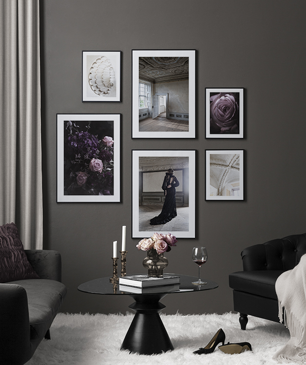 På hver enkelt billedvæg kan du også tilpasse motiverne og vælge størrelse, ramme, passepartout og andet plakattilbehør for at skabe en helt unik kombination. Valgene og mulighederne er uendelige – kun din egen fantasi sætter grænser. Find ren indretningsinspiration, og få den billedvæg, der er DIG, ved at klikke dig frem!