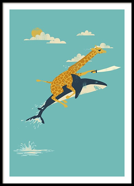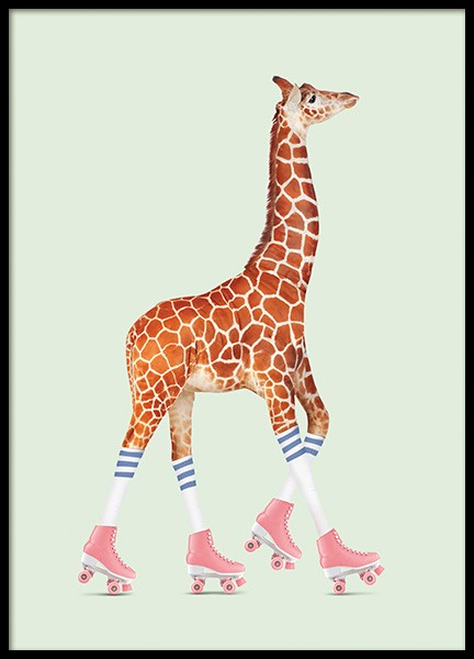 Rollerskating Giraffe Plakat