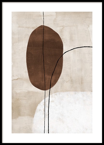 Handpicked Abstrakt maleri med brune, sorte og hvide figurer og blyantsstreger på en beige baggrund. Sammen med posteren Art Shapes No2 vil denne plakat være et fantastisk midtpunkt i et moderne hjem!