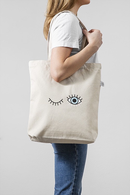 Handpicked Stofpose i naturlig beige med et lukket og et åbent øje. De trendy motiver gør vores stofposer til noget helt unikt, som du vil være stolt af at bruge! Vores stofposer i limited editon kollektion er trykt i Sverige og lavet af 100% genbrugs bomuld. Kollektionens stofposer fås kun i begrænset antal i en begrænset periode.