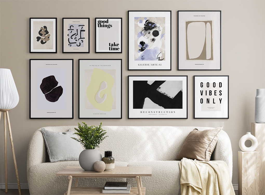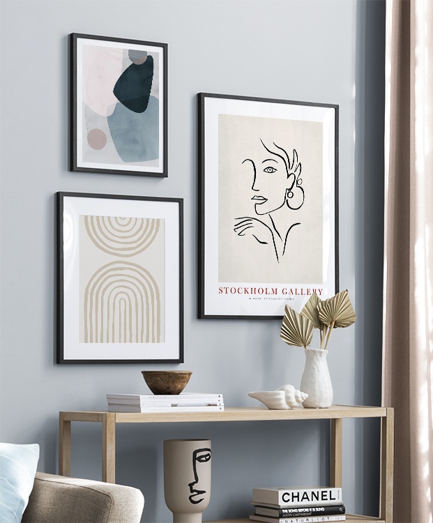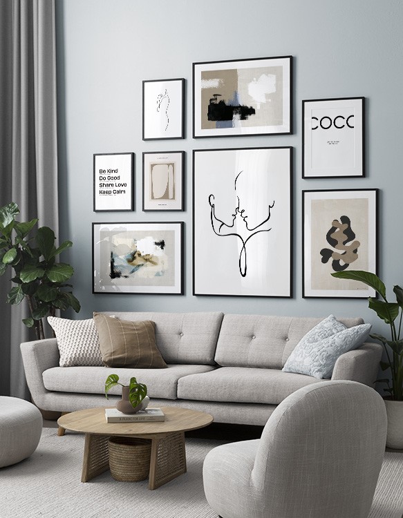 Grafiske plakater og posters giver hjemmet et moderne og kunstnerisk præg, og vores billedvægge med grafiske plakater passer til alle rum i dit hjem. Det er kun dig og din fantasi, der sætter grænser, så måske er tiden inde til at forlade de trygge rammer og vælge en billedvæg, der ikke følger den slagne vej?