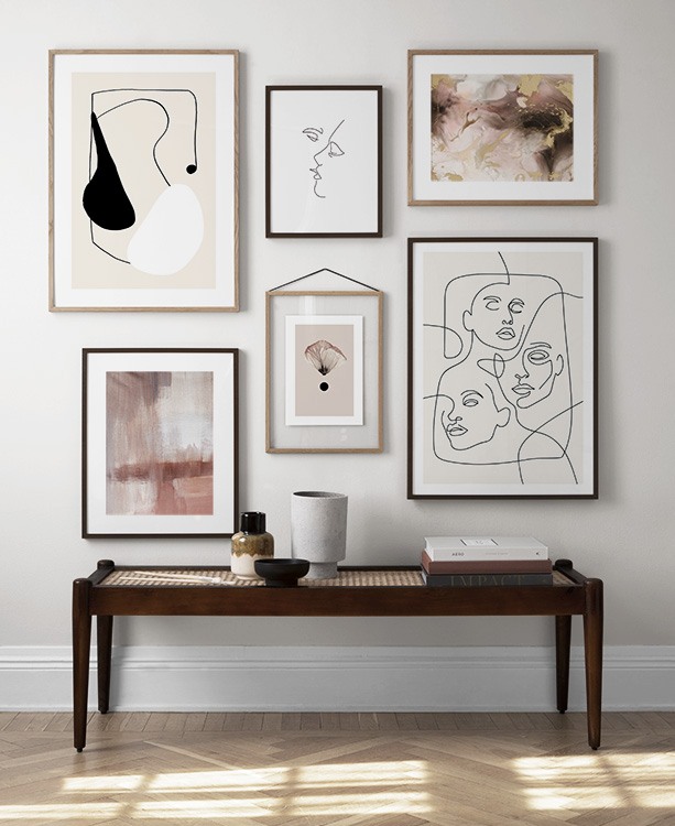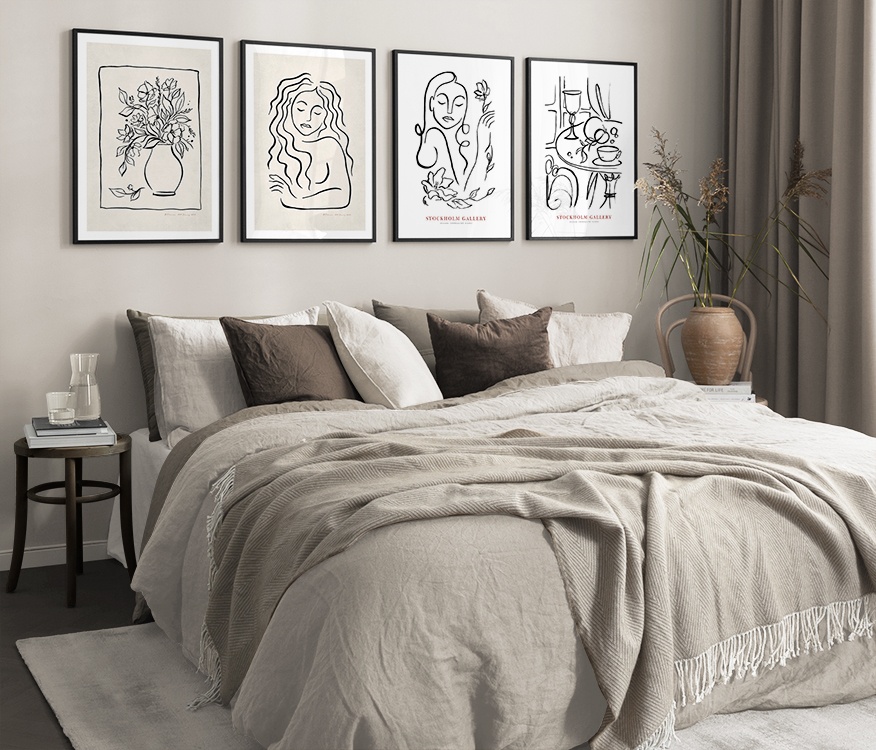 Find nogle nye favoritter blandt vores udvalg af billedvægge med line art! Denne moderne og populære stil byder på masser af posters og plakater i forskellige stilarter, og når line art-plakater kombineres, træder deres individuelle kendetegn virkelig frem. Hvis du har et hjem, hvor interiøret holdes i en neutral farvepalet, er line art en god tilføjelse.