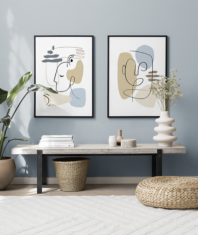 Vi elsker at finde de ultimative kunstkombinationer, der skaber en perfekt symbiose mellem to billedmotiver. Her sammensætter vi altså to forskellige plakater, vi elsker, i par! Vi leger med plakater i samme tema og størrelser, men også med helt forskellige design, formater og størrelser, der sammen forvandles til noget helt særligt. Her præsenterer vi plakater parvis, som du kan lade dig inspirere af, når du dekorerer dine vægge derhjemme – hvad med et sort-hvid billede kombineret med en plakat med tekst eller hvorfor ikke to matchende botaniske posters?