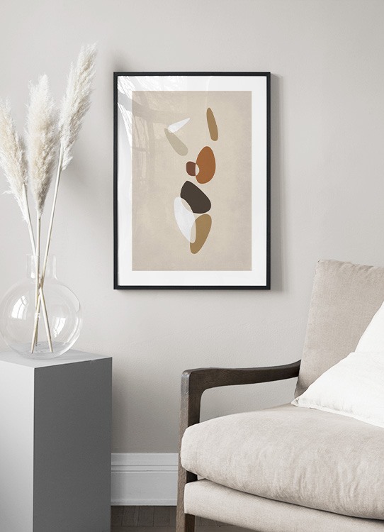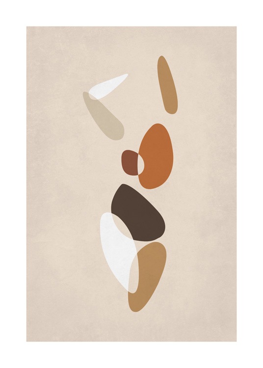 Handpicked Grafisk illustration med en abstrakt krop, der består af brune og orange figurer på en beige baggrund. Giv hjemmet et moderne look med denne grafiske plakat! Sammensæt den med posteren Body Shapes No1 for at få et perfekt par.