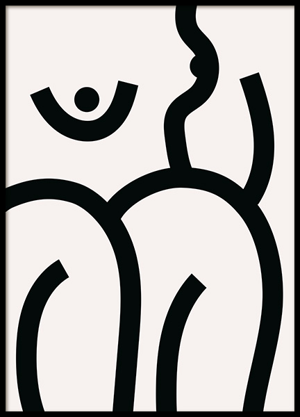 Handpicked Abstrakt illustration med bryster tegnet med brede, sorte streger på en lys beige baggrund. Vi synes, at en grafisk illustration er et must for ethvert hjem! Dette abstrakte motiv passer perfekt i en billedvæg med andre illustrationer eller noget fotokunst. En endnu bedre idé vil være at sammensætte plakaten med posteren Bold Body No1 for at få perfekt par!