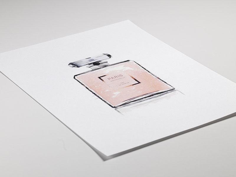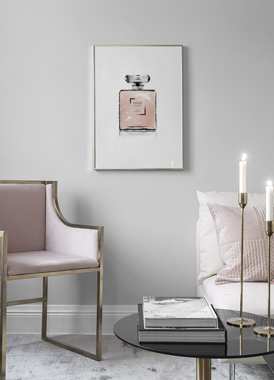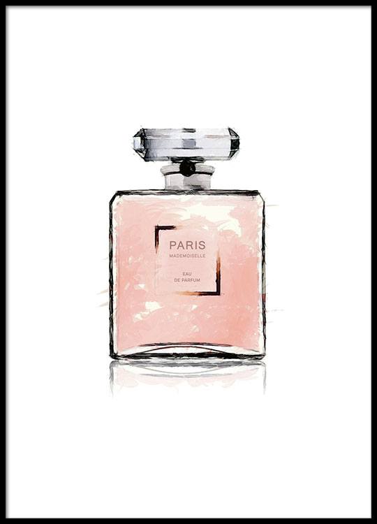 Fra 45,50 kr.Akvarel med illustration af en lyserød Chanel-parfumeflaske med ordet Paris. Denne stilfulde plakat vil se lige så flot ud hængende på væggen som stående på en hylde, og ved hjælp af fashionplakater og -posters kan du let sammensætte en trendy billedvæg og samtidig bevare et stilfuldt look!