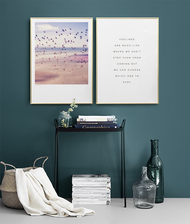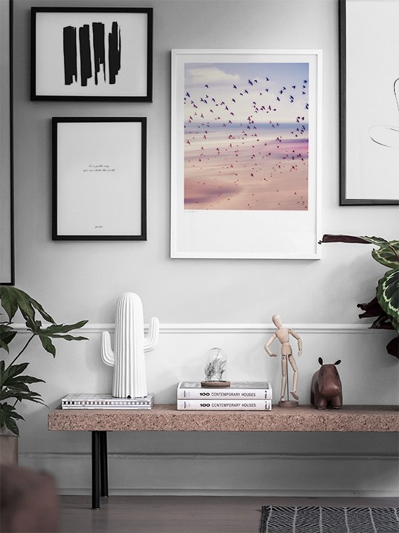 Fra 45,50 kr.Smuk plakat med fugle på en aftenhimmel. Et fint billede med fotokunst i harmoniske farvenuancer. Billedet er printet på mat, ubestrøget papir af høj kvalitet. Fuldend billedet med et tilkøb af en ramme. Vi har et stort udvalg af plakater og plancher med fotografier og fotokunst. Plakaten er med '”indbygget'” passepartout, som rammer motivet fint ind.