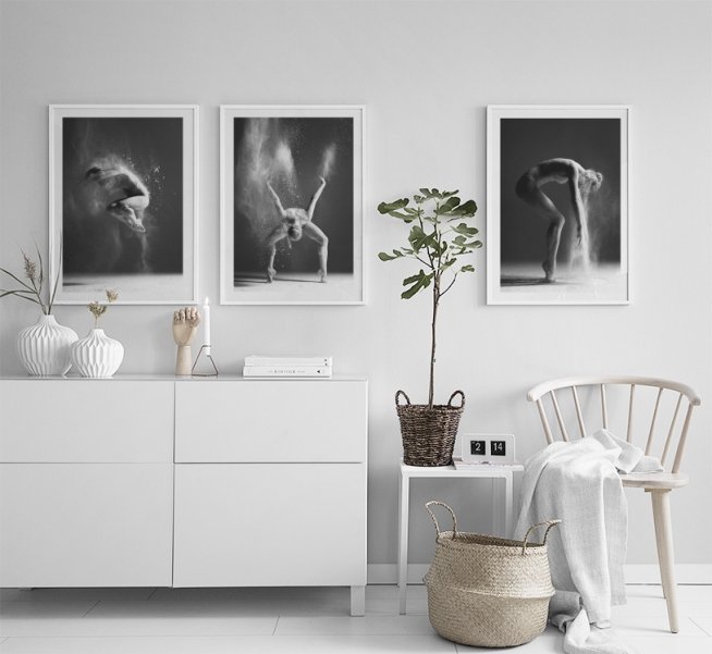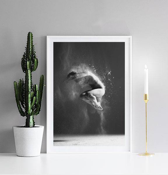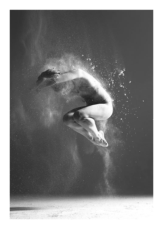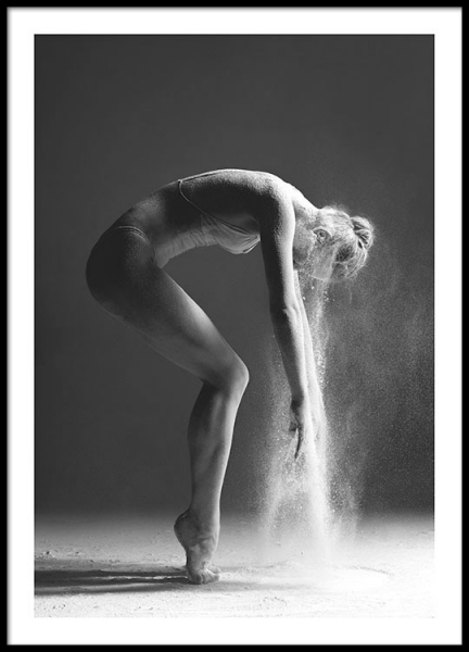 Handpicked Sort-hvid plakat med fotokunst af en danser fanget i en flot bevægelse. Et rigtig flot og effektfuldt billede, som er utroligt flot på væggen i et hvilket som helst rum. Se gerne vores andre plakater i kategorien Fotokunst. Mange af motiverne kan nemt kombineres. Plakaten er med '”indbygget'” passepartout, som rammer motivet fint ind.