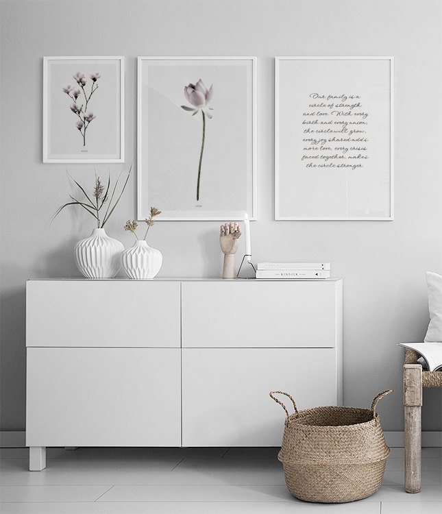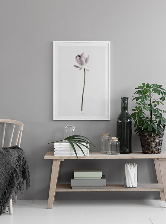 Handpicked Smuk botanisk plakat med fotografi af en lotusblomst. Plakaten har en grå baggrund med hvid kant. Passer fint sammen med vores anden botaniske plakat med en magnolia fra samme serie. Denne plakat kan også matches med en fin tekstplakat med citat. Tryktt på ubestrøget, mat papir af høj kvalitet. Ramme indgår ikke. Plakaten er med '”indbygget'” passepartout, som rammer motivet fint ind.