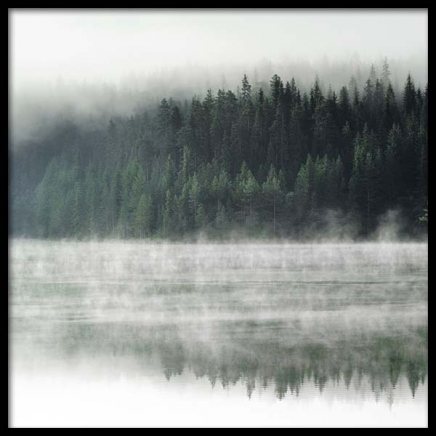 Handpicked Naturfotografi af skov og hav med dis, der bugter sig over søen. Plakaten har et kvadratisk format og vil være flot at kombinere med plakater i klassiske rektangulære former på en billedvæg for at skabe dynamik og kontraster. Udforsk flere af vores kvadratiske plakater i størrelseskategorien 50x50 cm.