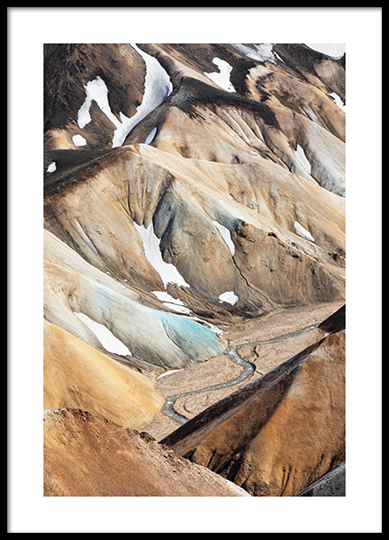 Handpicked Fotografi af farverige bjerge i det sydlige højland Landmannalaugar på Island. Udforsk Studio Elements - en fotokollektion skabt af Desenio Design Studio, der blev fotograferet forskellige steder i Island.