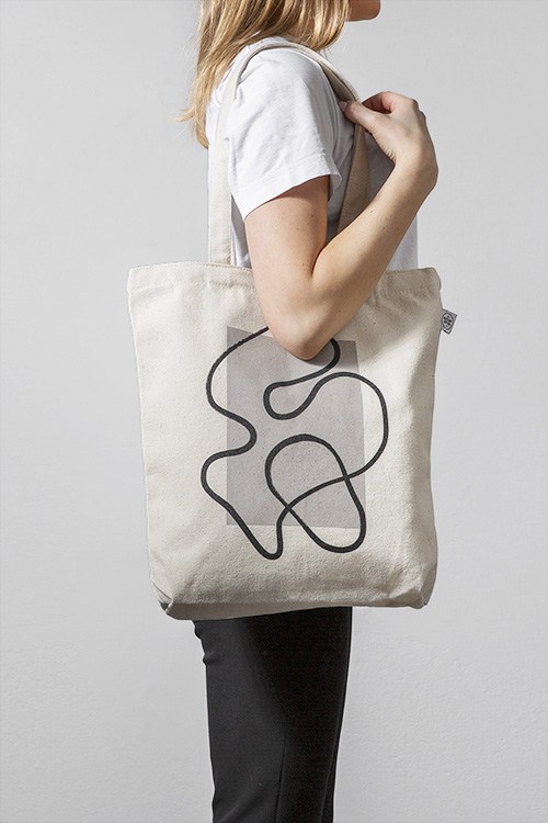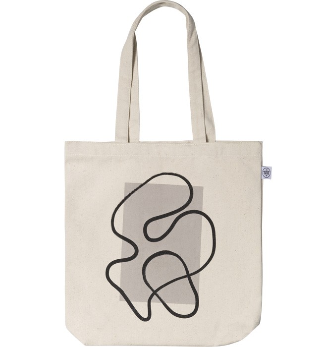Handpicked Stofpose i naturlig beige med en sort krusedulle på et rektangel i mørk beige. En stofpose er god at have med, når du ikke havde planlagt at købe noget! Vores stofposer i limited editon kollektion er trykt i Sverige og lavet af 100% genbrugs bomuld. Kollektionens stofposer fås kun i begrænset antal i en begrænset periode.