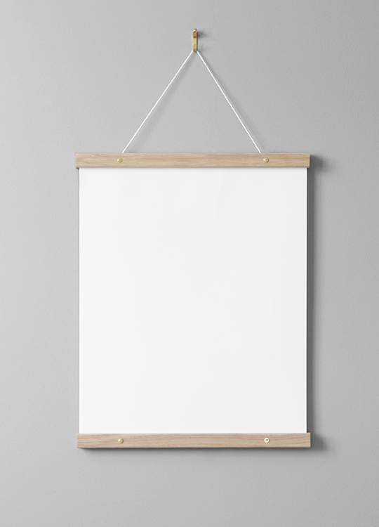 Handpicked Plakatophæng i eg, der monteres med messingskruer. Dette plakatophæng passer til plakater i stående format, der måler 40x50 cm, og plakater i liggende format, der måler 30x40 cm. Brug en skruetrækker til at montere plakatophænget (skruer og snor til ophængning medfølger) for at få det bedste resultat. Se, hvordan du fastgør plakaten uden at beskadige den, i den korte instruktionsfilm i sidemenuen med billeder.