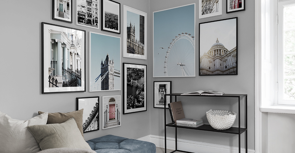 Pryd dine vægge med den statelige St Paul’s Cathedral, den fantastiske kirke Westminster Abbey eller det berømte pariserhjul London Eye – et af Londons klassiske vartegn. Du vil også finde fotografier af London i en farveskala, der normalt ikke forbindes med London, fra gaderne omkring Primrose Hill og Notting Hill med huse og døre i mintgrønne, lyserøde og gule nuancer.