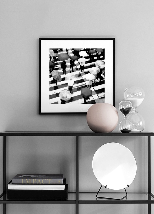 Umbrellas on Crosswalk Plakat i gruppen Plakater / Sort-hvid hos Desenio AB (11678)