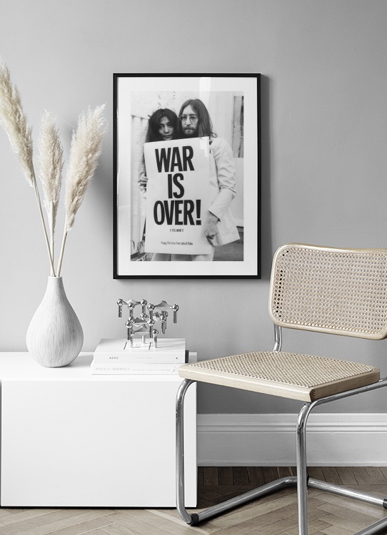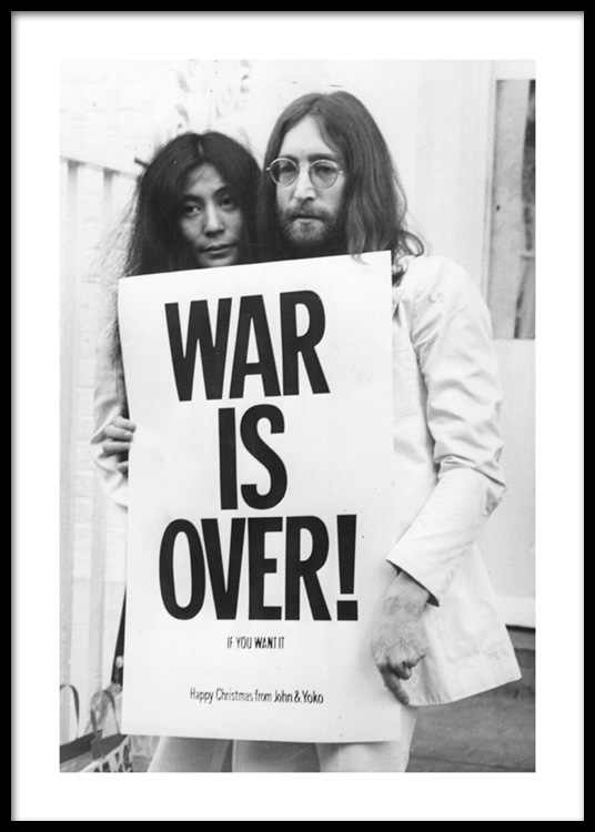 Fra 91 kr.Sort-hvidt foto af det ikoniske par John Lennon og Yoko Ono, der holder en plakat med teksten War is Over. Billedet er et af de mest klassiske fotografier i verden, og blev taget under John Lennon og Yoko Onos fredskampagne i 1969 med budskabet 'War is Over! If you want it'.
