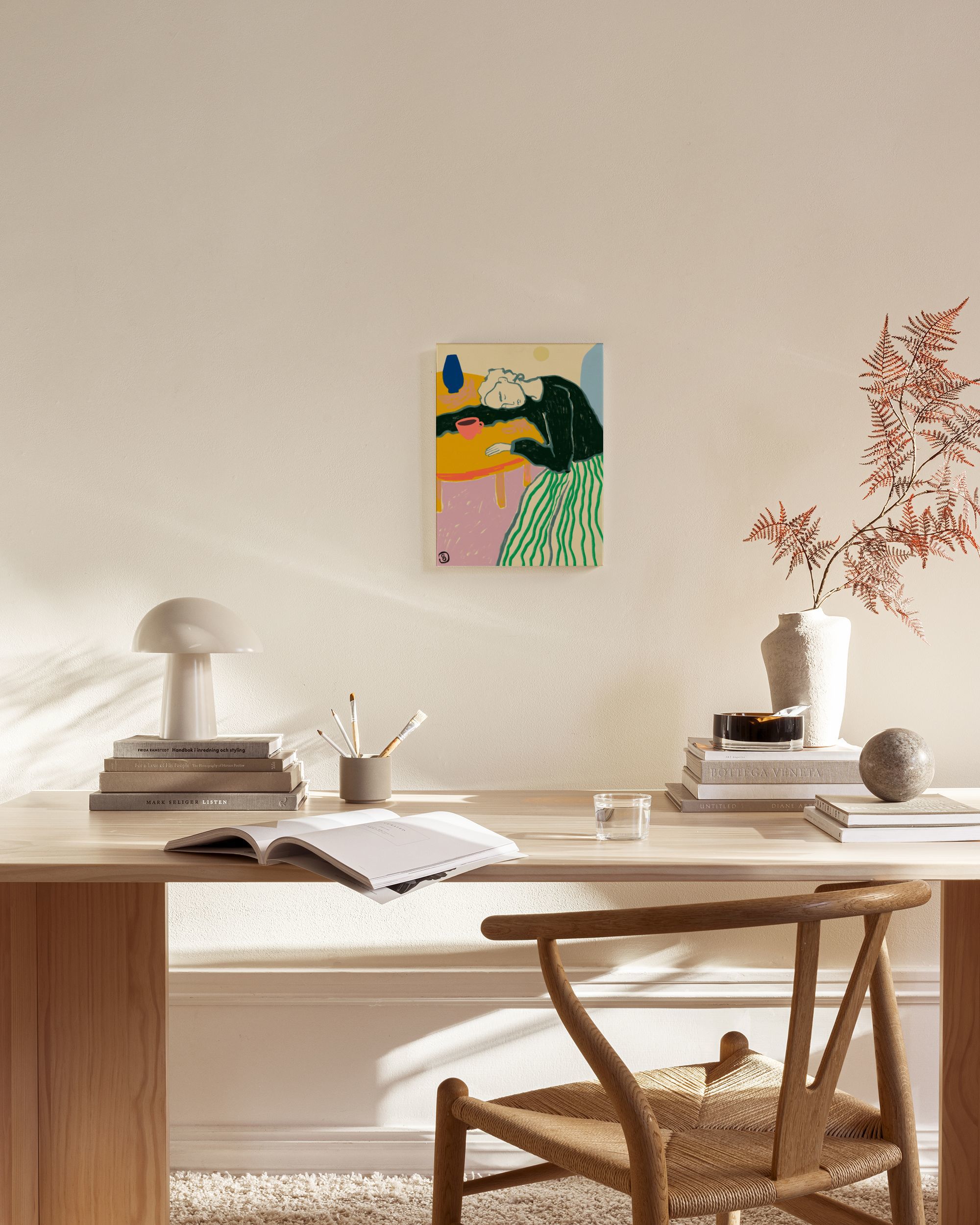 Dette motiv er trykt på lærred og har en flad overflade.