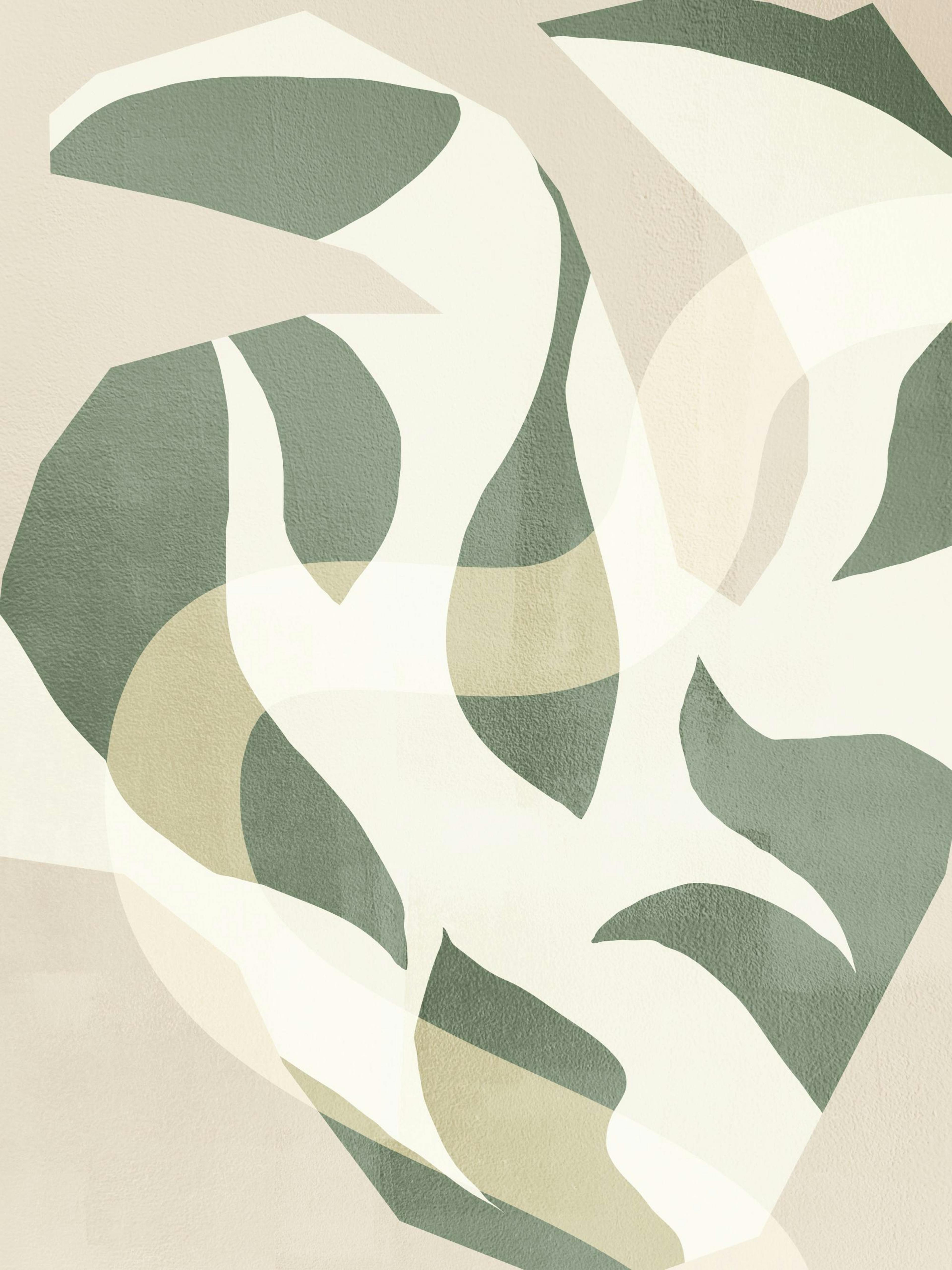Rolige figurer og dæmpede grønne nuancer går op i en højere enhed i plakaten 'Imperfect Botanical No. 1'.