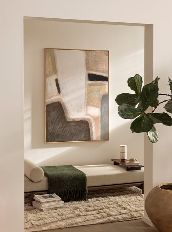 Omfavn roen gennem enkelhed. Neutrale toner, bløde former og lyse trærammer skaber en harmonisk balance – perfekt til moderne, bevidste interiører.