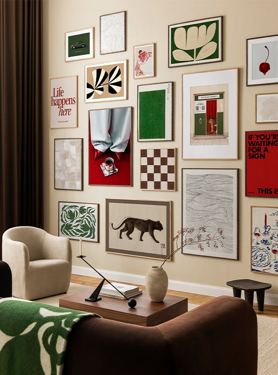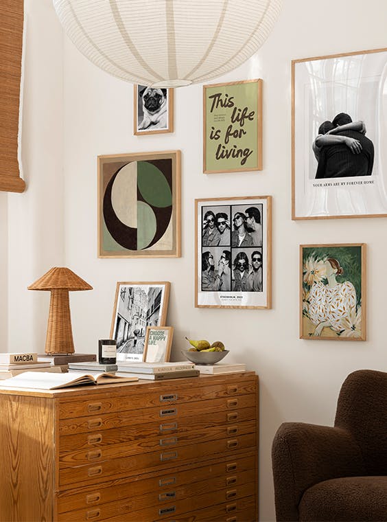 Fortæl din historie gennem kunst. Bland dine yndlingsfotografier med kuraterede plakater for at designe billedvægge, der føles unikt dine – et spejl af øjeblikke, minder og individualitet.